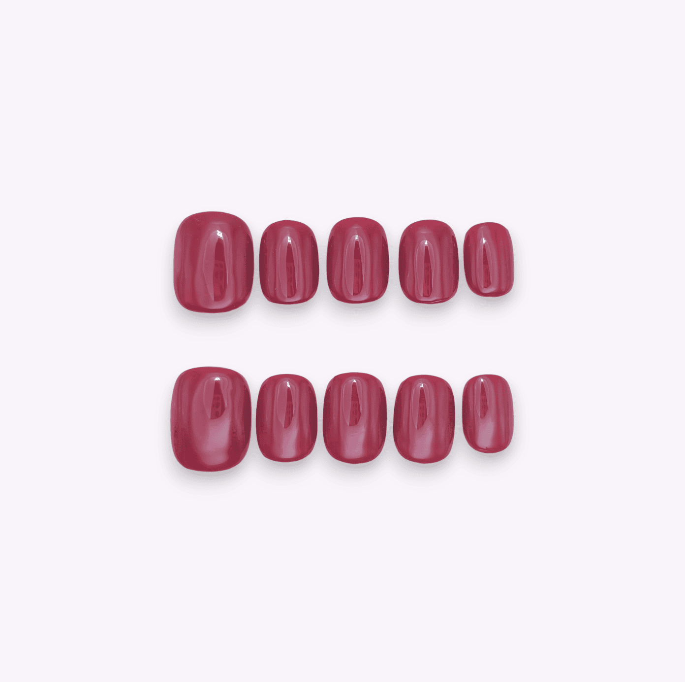 Le press on nails Deep Red presentano una forma squoval corta, ideale per chi preferisce un look sofisticato e pratico. Questa forma unisce la dolcezza della punta arrotondata con la pulizia del taglio quadrato. Il risultato è un effetto ordinato e naturale che valorizza le mani di chi le indossa.
