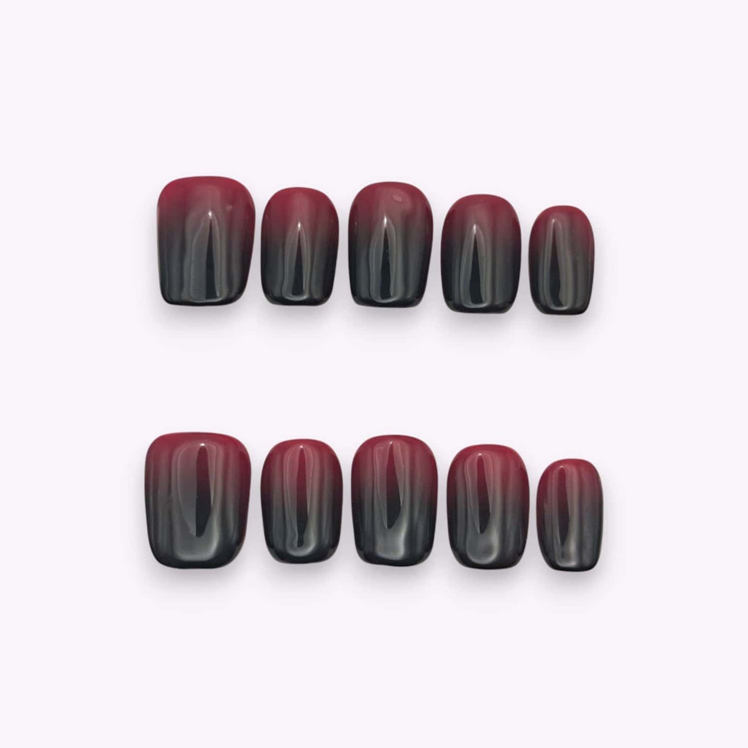 Un mix perfetto tra sensualità e raffinatezza. Il set Black Cherry Short gioca con sfumature profonde di ciliegia scura e nero, in un effetto ombré magnetico e glossy. Perfette per un look deciso e sofisticato, da sera o per chi ama uno stile bold anche nella quotidianità.