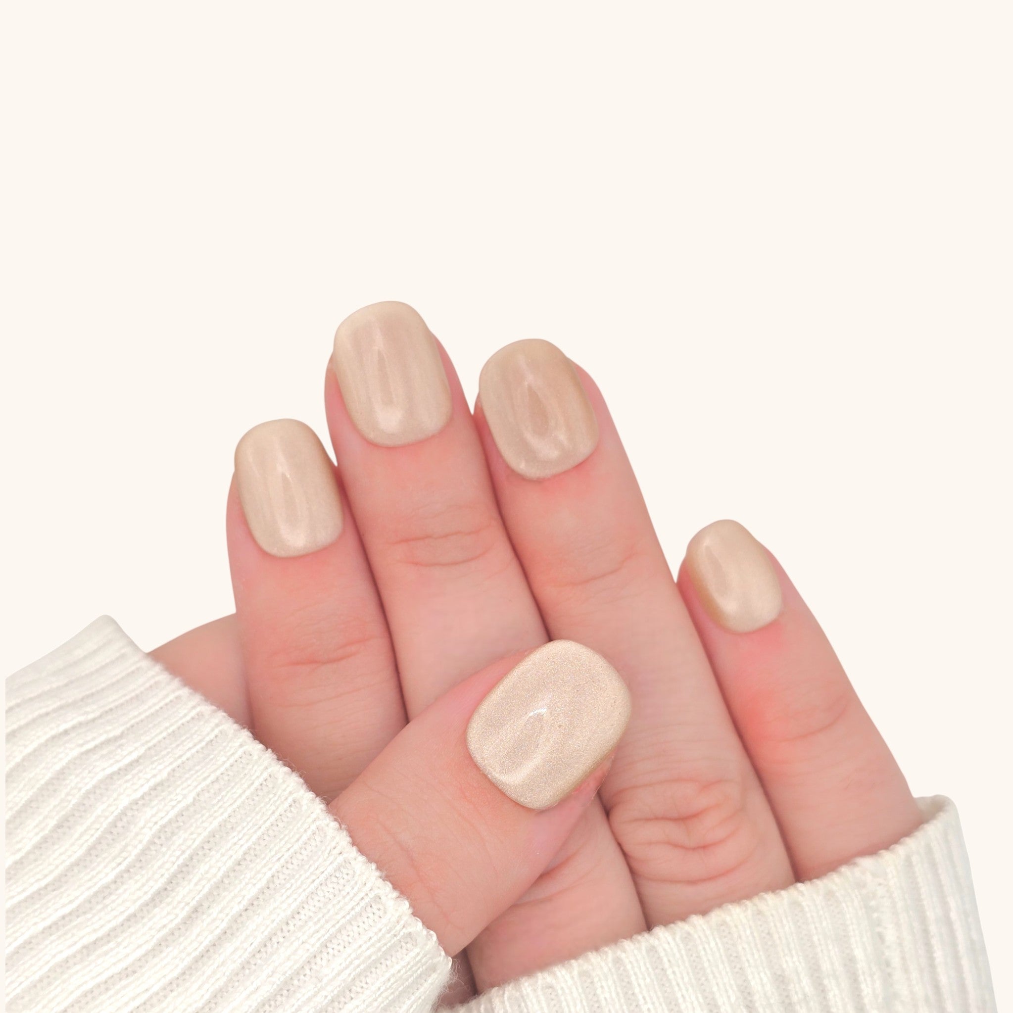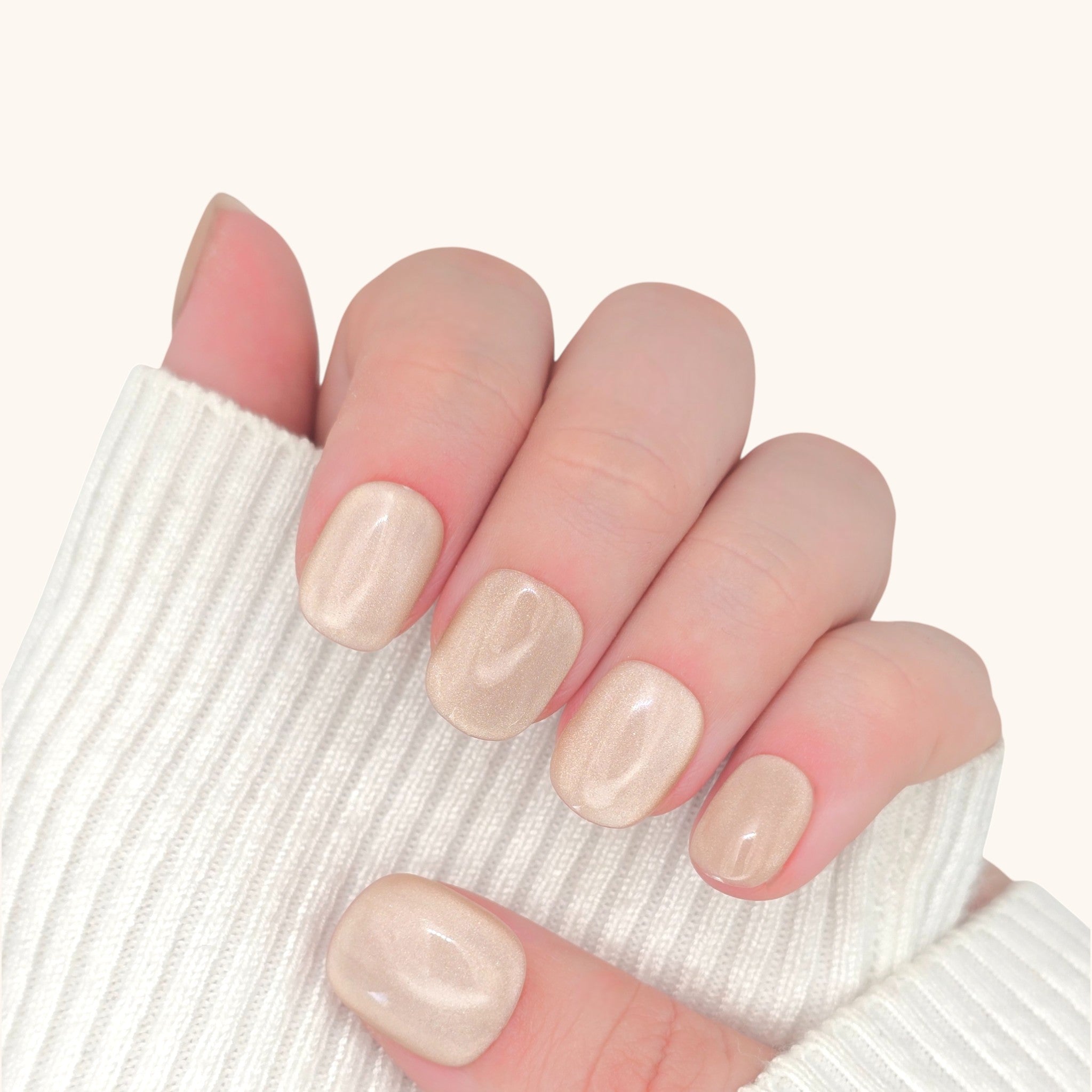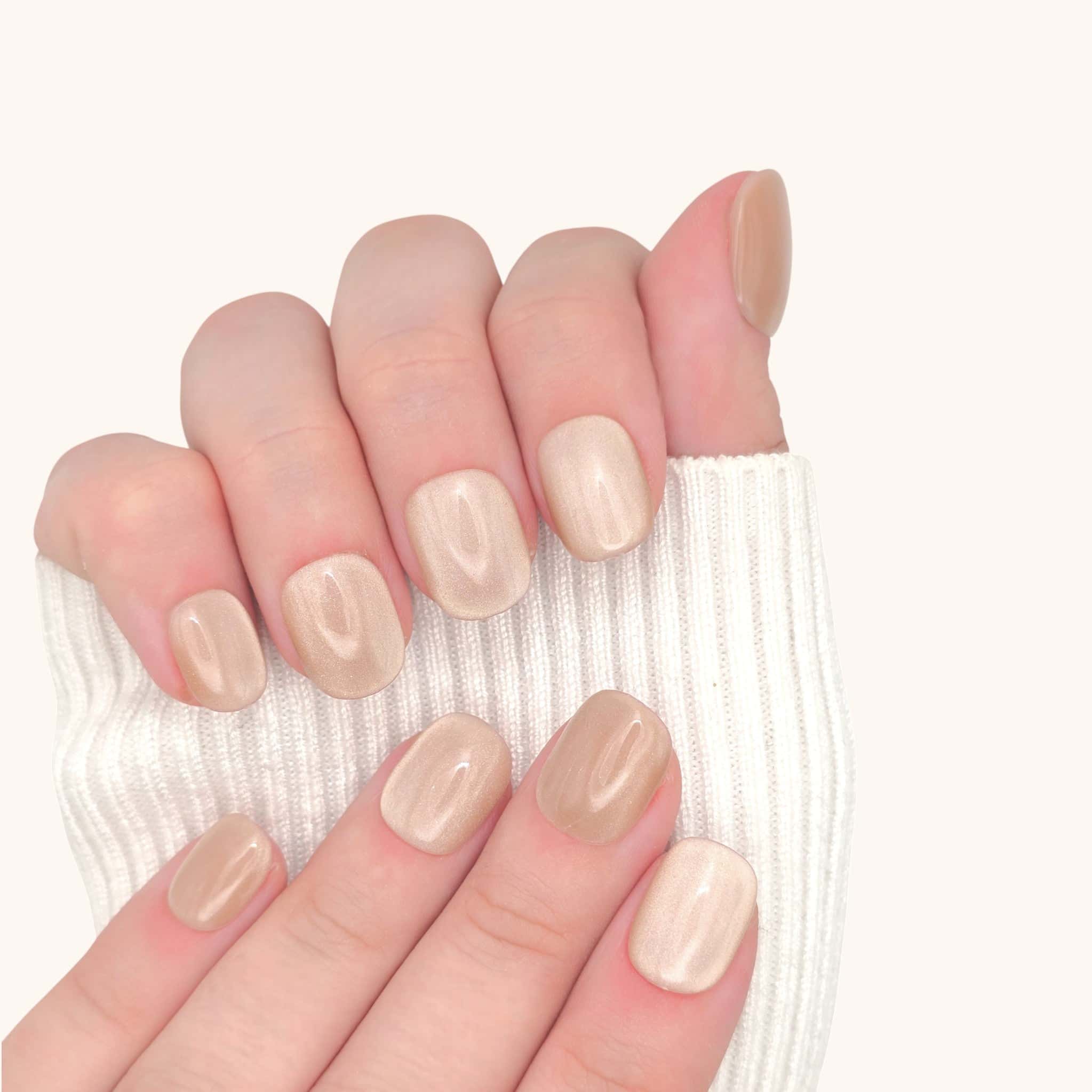 Champagne Prism è il set di unghie press-on corte squoval in gel dorato, pensato per chi desidera una manicure elegante e luminosa in ogni momento della giornata. La delicata tonalità champagne, arricchita da riflessi dorati, veste le mani di brillantezza e raffinatezza, perfetta sia per look quotidiani che per serate speciali. Queste unghie in gel press-on offrono una finitura lucida e impeccabile, ideale per chi cerca unghie eleganti e facili da applicare a casa. Con il loro design pratico e materiali di alta qualità, Champagne Prism unisce glamour e comodità per unghie sempre curate.